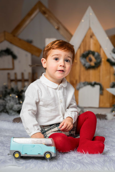 Cada año creamos un decorado diferente para las sesiones navideñas, y cada uno es especial, ya que la Navidad irradia alegría e ilusión. Ofrecemos mini sesiones para todas las edades, asegurando un hermoso recuerdo.